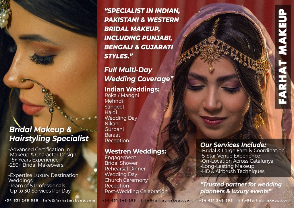 LA MEJOR ARTISTA DE MAQUILLAJE DE NOVIAS INDIANAS EN BARCELONA • CERTIFICACIÓN AVANZADA EN MAQUILLAJE Y DISEÑO • 15+ AÑOS DE EXPERIENCIA • +250 NOVIAS MAQUILLADAS • EXPERTA EN BODAS DE DESTINO Y LUJO • EQUIPO DE 5 PROFESIONALES • HASTA 30 SERVICIOS POR DÍA